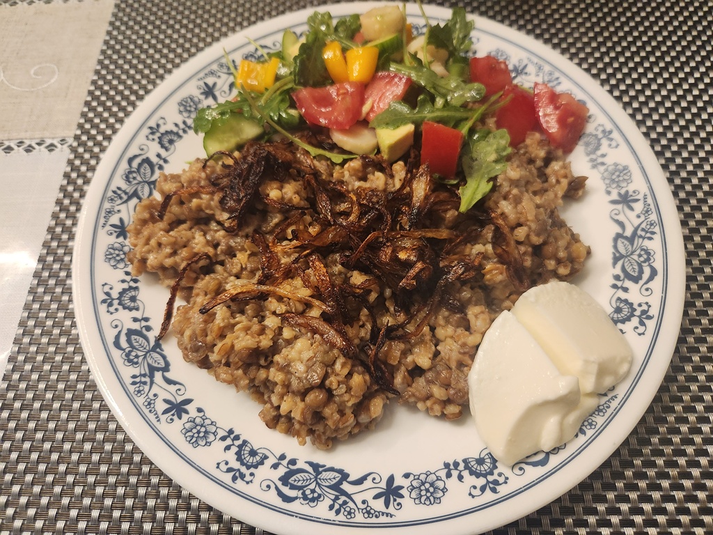 With more carmelized onions this time. Can you tell bob loves this dish?
