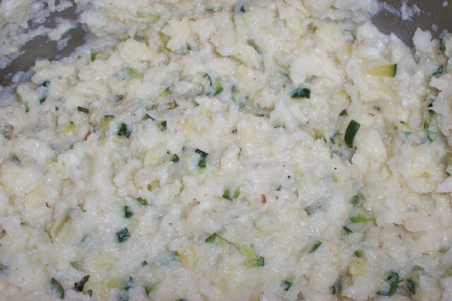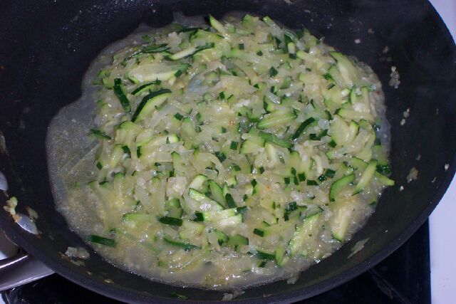 But it is a bit boring in the color department, so we decided to jazz it up with some sauteed onions and zucchini:
